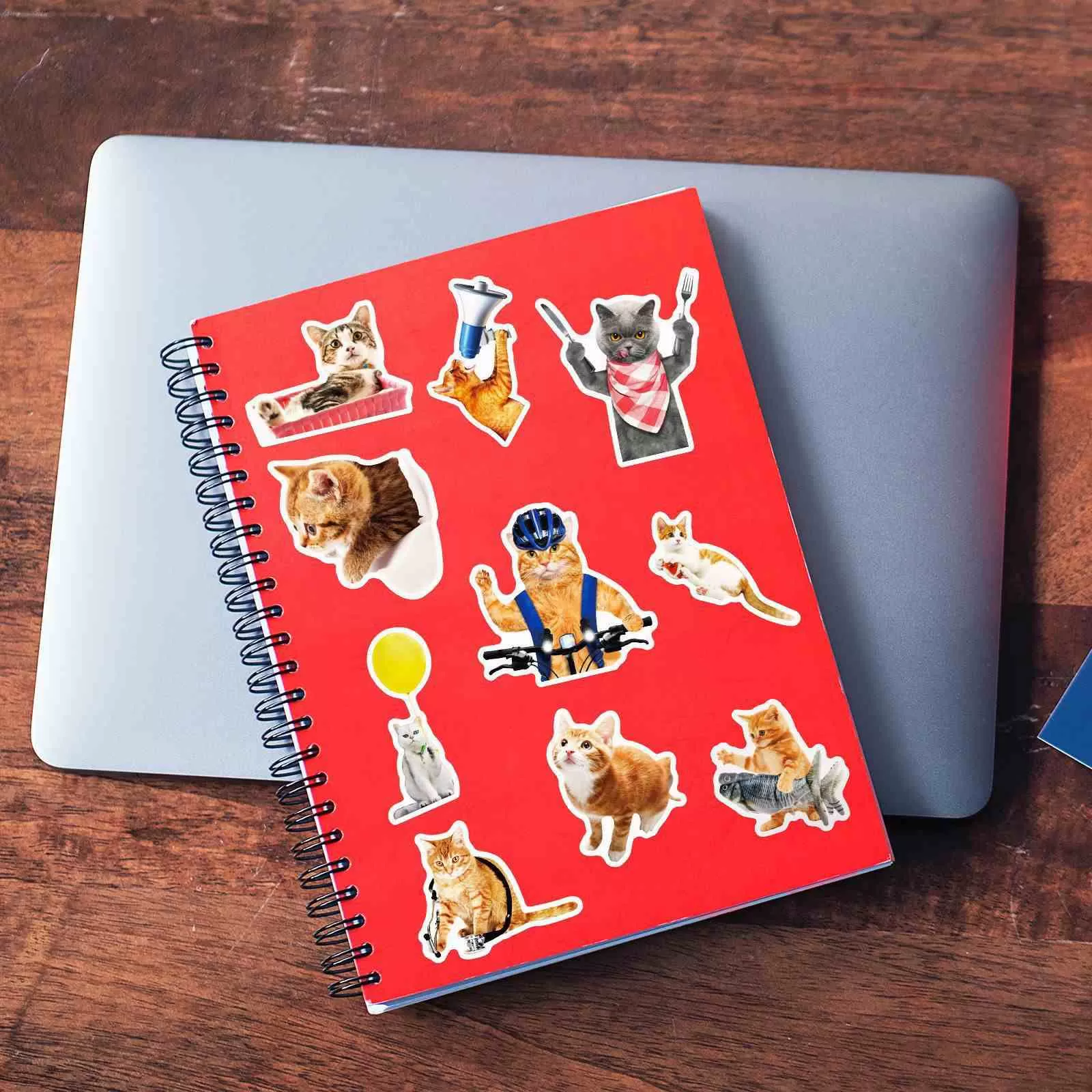 JIELEN 50 CÁI Hình dán mèo thực tế dễ thương, Gói hình dán động vật mèo đáng yêu để làm sổ lưu niệm, viết nhật ký, lập kế hoạch, máy tính xách tay, trang trí đồ thủ công tự làm