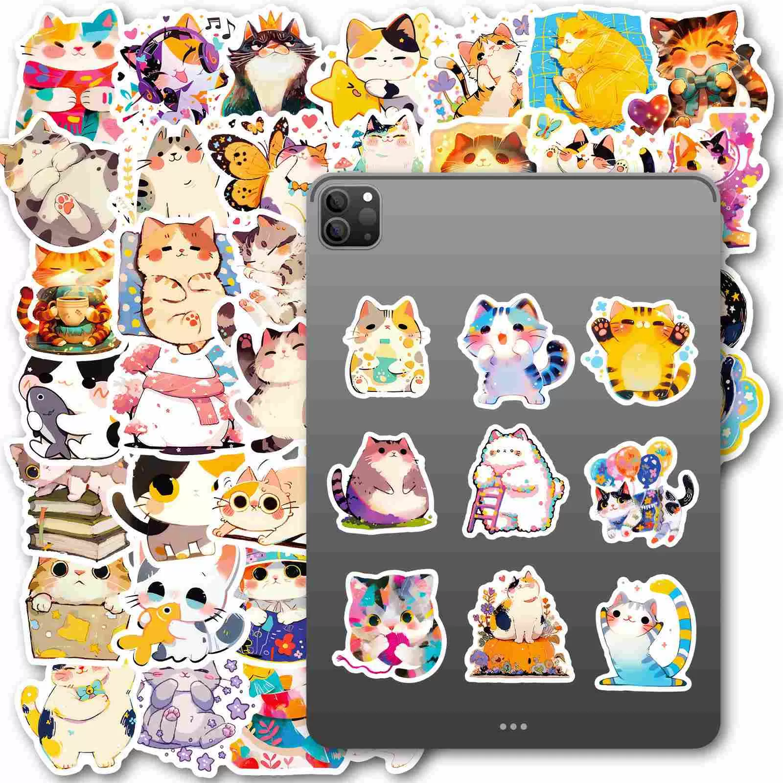JIELEN 50 CÁI Hình dán nguệch ngoạc đáng yêu cho mèo lười biếng, Gói nhãn dán chống thấm nước Kawaii dễ thương để trang trí tạp chí, máy tính xách tay, điện thoại, sổ lưu niệm, phụ kiện lập kế hoạch