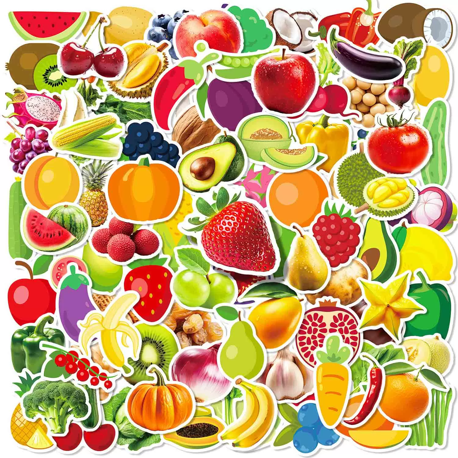 JIELEN 100 CÁI Hình dán trái cây, Hình dán rau, Hình dán Graffiti, Hình dán dễ thương cho Tủ lạnh, Máy tính, Ván trượt, Chai nước
