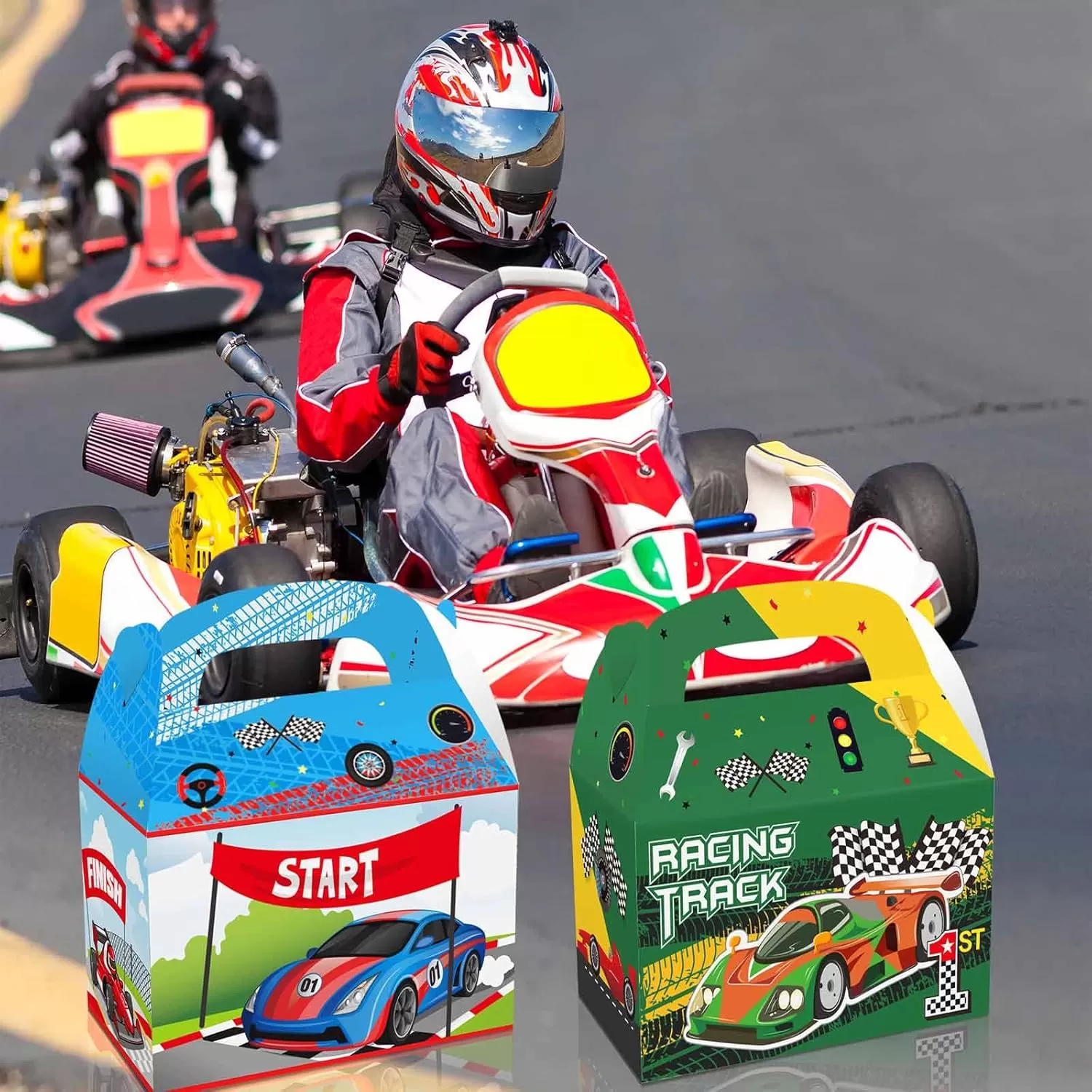Trang trí tiệc đua xe: Hộp quà tặng tiệc xe hơi sẽ là sự bổ sung hoàn hảo cho bữa tiệc của bạn. Sử dụng chúng để đựng kẹo và kẹo để gây ấn tượng với khách của bạn.