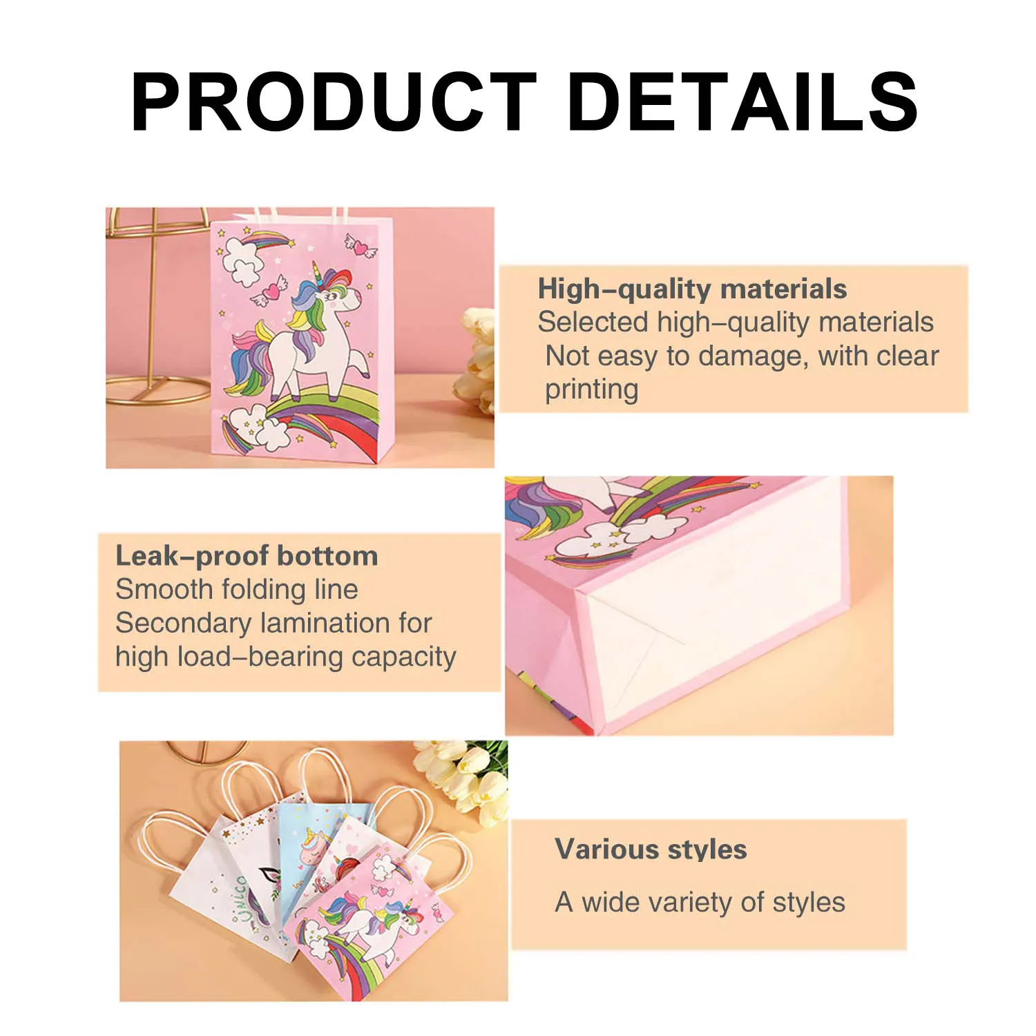 Túi giấy ngựa cầu vồng: Túi giấy kỳ lân của chúng tôi phù hợp với nhiều đồ trang trí sự kiện khác nhau và rất thuận tiện để đựng các vật dụng nhỏ.
