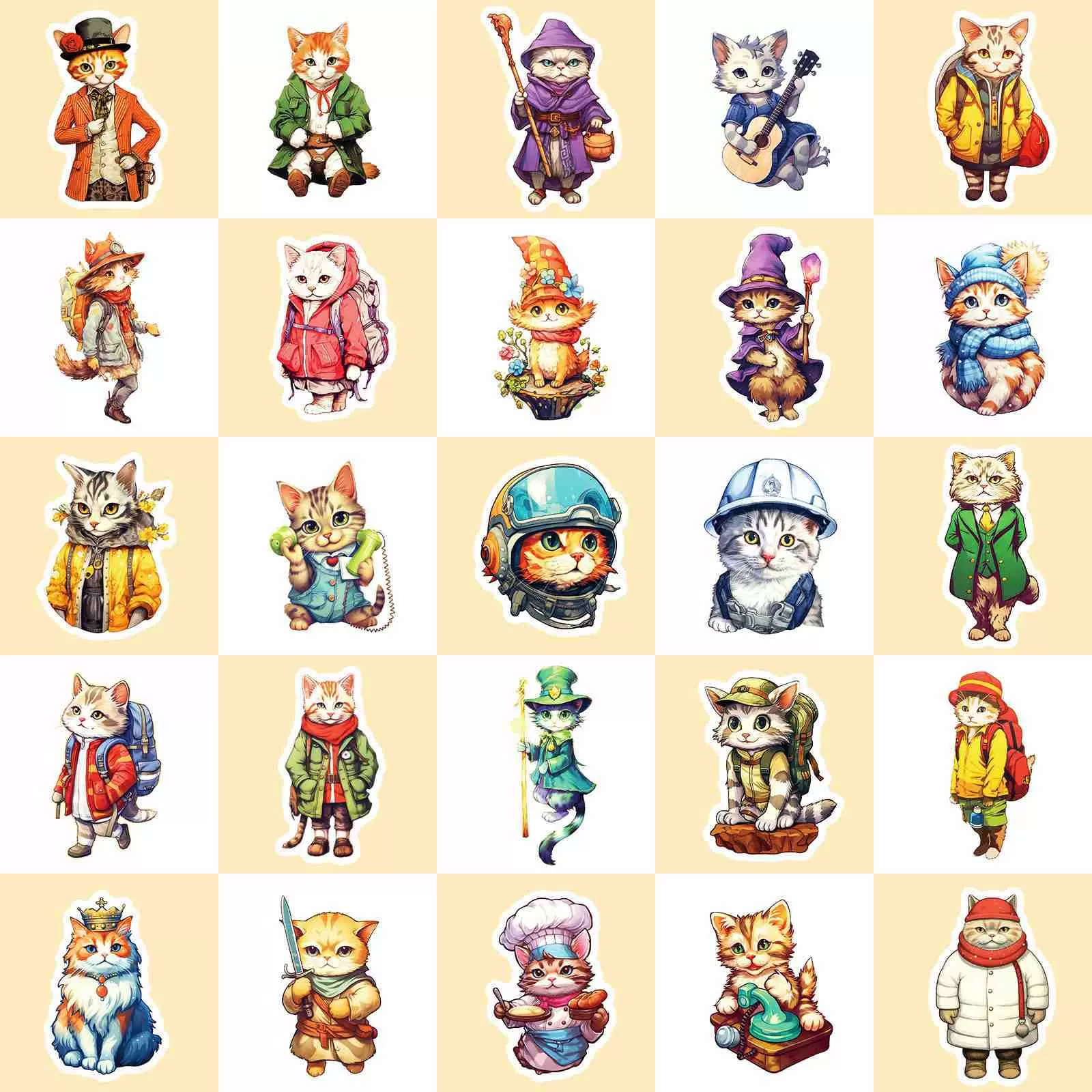 Thiết kế nghệ thuật màu nước sống động: Có 50 hình minh họa mèo quyến rũ độc đáo được vẽ theo phong cách màu nước mềm mại, mỗi người đội một chiếc mũ nhỏ. Bộ thiết kế thẩm mỹ và nghệ thuật này là lựa chọn hoàn hảo để tạo thêm nét kỳ lạ cho đồ đạc của bạn.